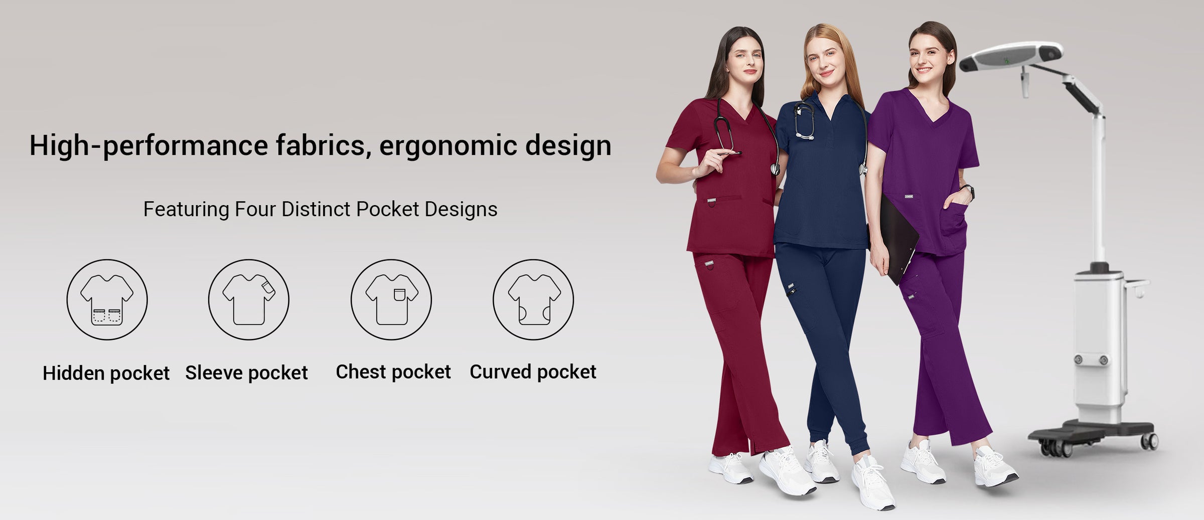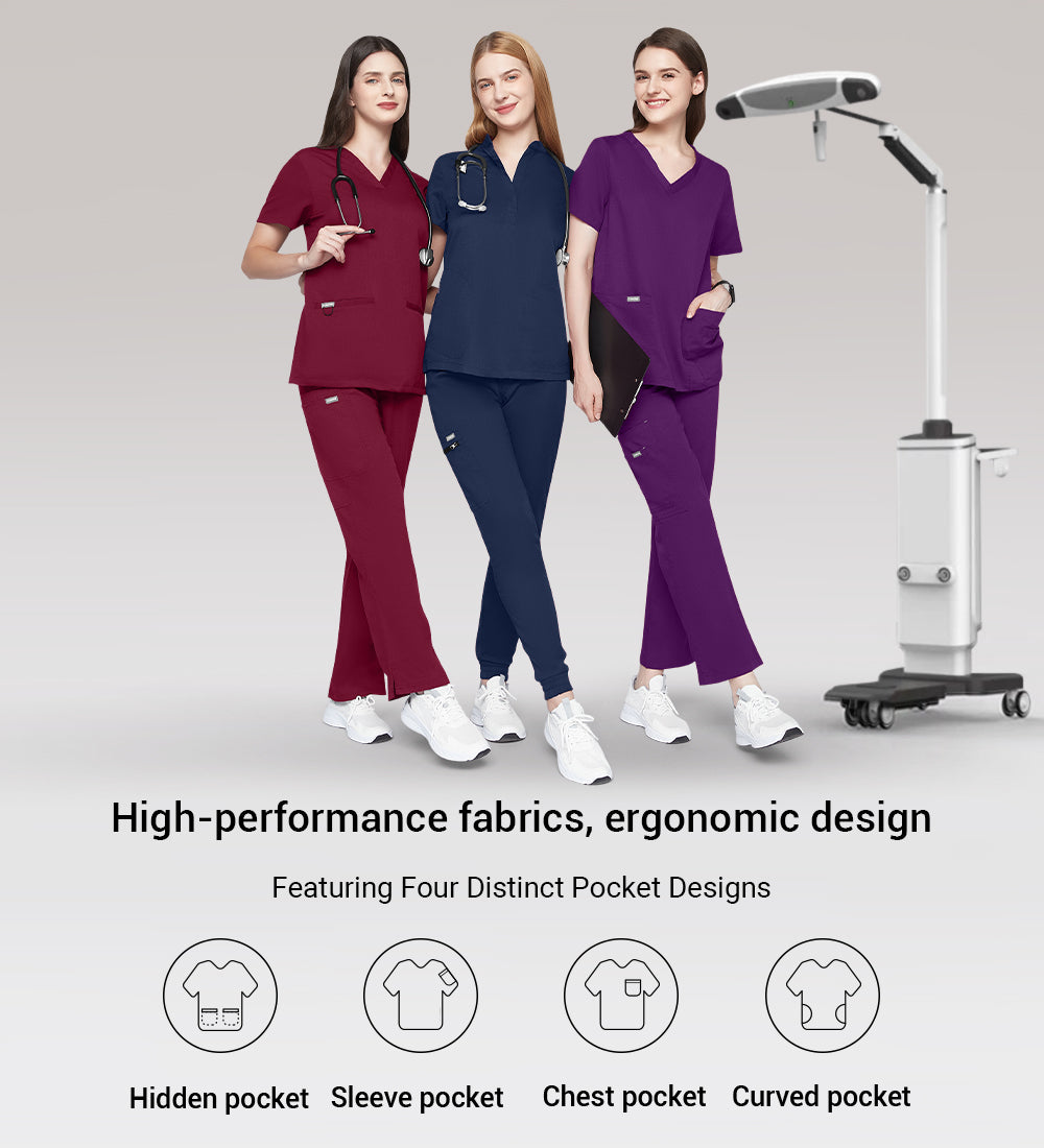 Our medical scrubs prioritize comfort with soft, breathable fabrics and lightweight, stretchable materials for freedom in busy environments.