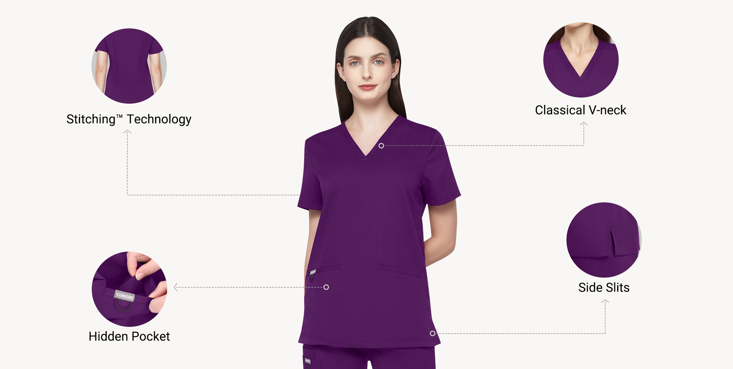 Our medical scrubs prioritize comfort with soft, breathable fabrics and lightweight, stretchable materials for freedom in busy environments.