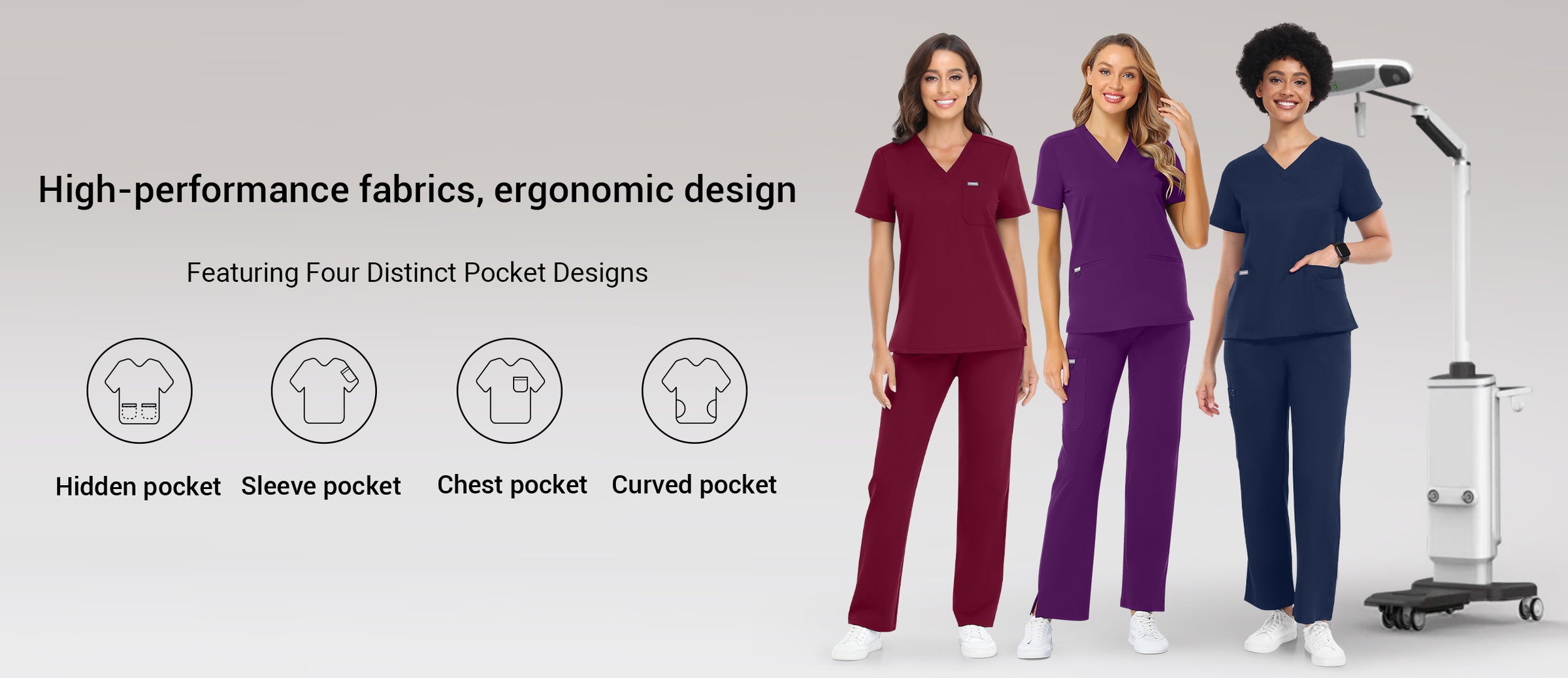 Our medical scrubs combine functionality with fashion, featuring modern, unique designs for comfortable and stylish workwear choices.