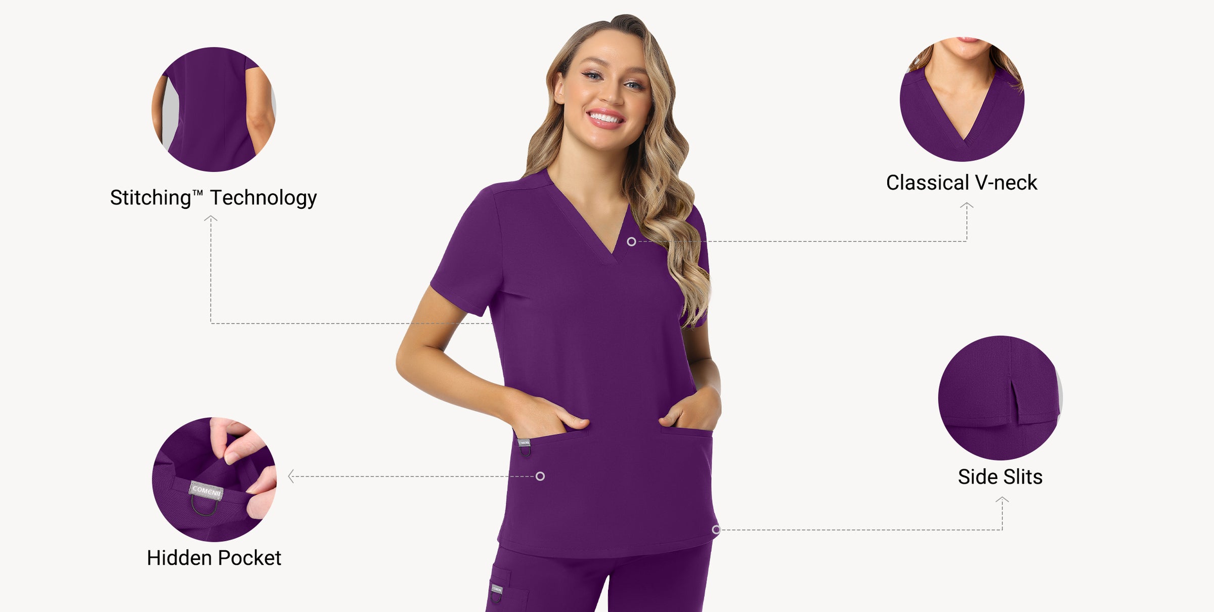 Our medical scrubs prioritize comfort with soft, breathable fabrics and lightweight, stretchable materials for freedom in busy environments.