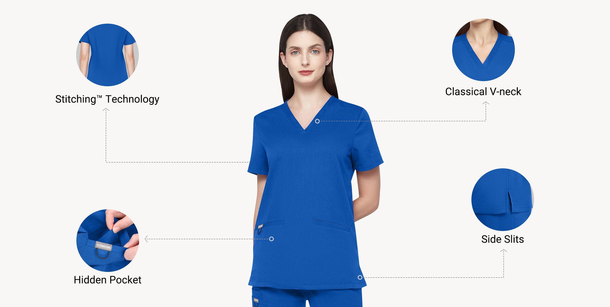 Our medical scrubs prioritize comfort with soft, breathable fabrics and lightweight, stretchable materials for freedom in busy environments.