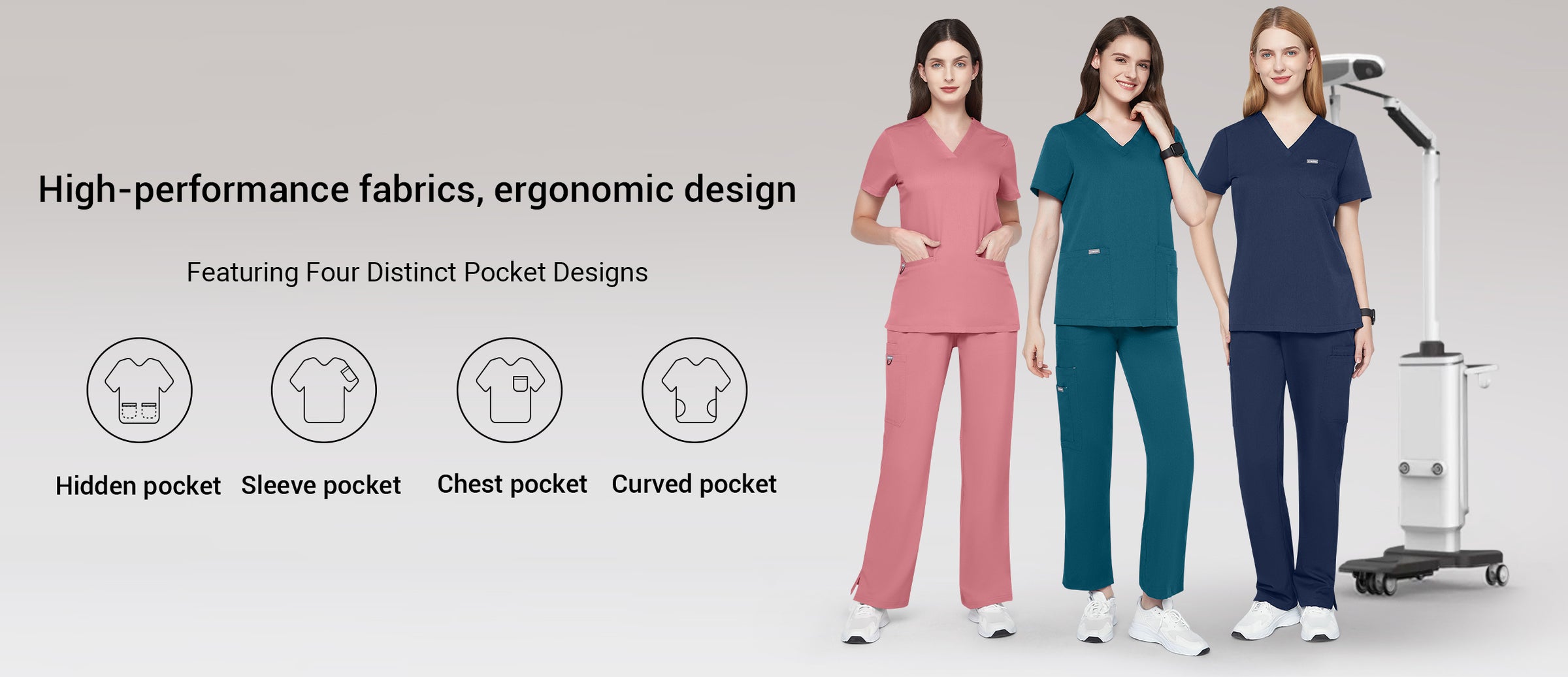 Our medical scrubs prioritize comfort with soft, breathable fabrics and lightweight, stretchable materials for freedom in busy environments.